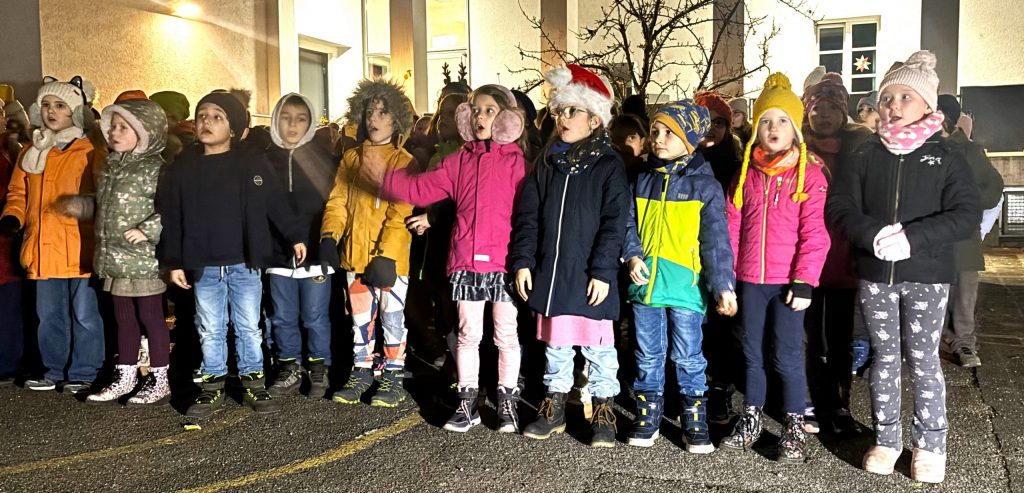 Das angenehm trockene Winterwetter lud im Anschluss an die Liedbeiträge der Kinder und die besinnlichen Worte von Schulleiterin Beate Grimm zum Verweilen ein.